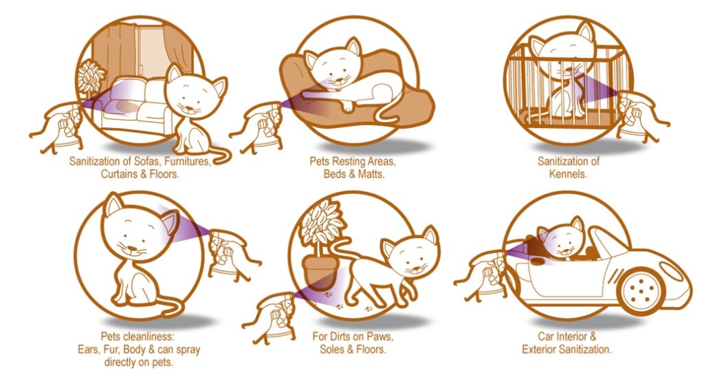 Giúp loại bỏ đến 99.9% vi khuẩn và mùi hôi khó chịu từ lông, da hay nơi ở của thú cưng chỉ trong vài giây.
